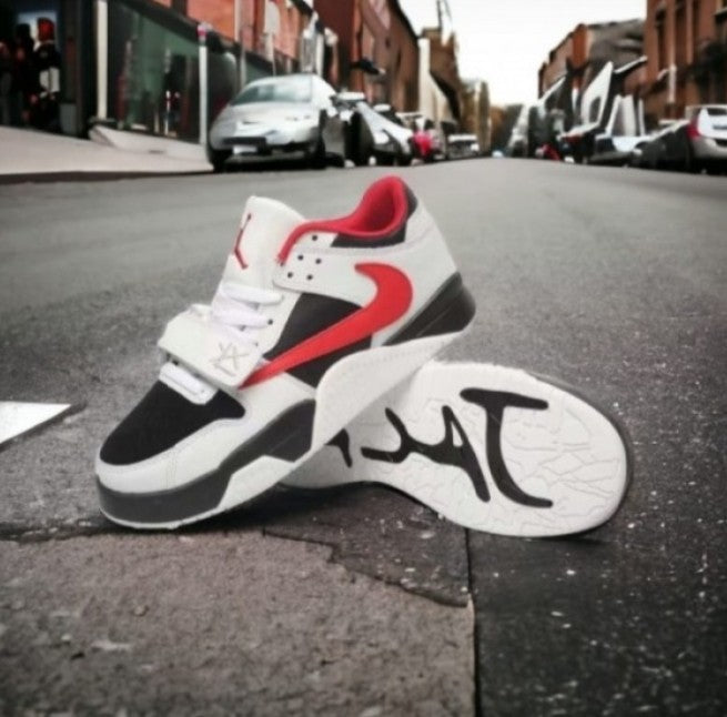 The Air Jordan x Travis Scott x Jumpman in Sail/Black/White/Red brings together Jordan Brand heritage and Travis Scott’s signature design edge. Crafted with a premium leather and suede upper, the sneaker showcases a sail base contrasted with black overlays, accented by white panels and striking red detailing for bold visual impact. The iconic reverse Swoosh, a Travis Scott trademark, makes the silhouette instantly recognizable, while Jumpman branding on the tongue and Cactus Jack detailing on the heel highlight the collaboration.
