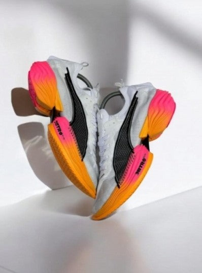 The PUMA Fast-R Nitro Elite 2 White Orange is built for pure race-day speed, combining bold style with advanced running technology. Its nitrogen-infused NITROFOAM™ Elite midsole delivers ultra-lightweight cushioning and explosive energy return, while the full-length carbon PWRPLATE propels you forward with every stride. A breathable ULTRAWEAVE upper with PWRTAPE support keeps the fit secure yet weightless, and the PUMAGRIP outsole ensures reliable traction on any surface. Finished in a striking white and orange colorway, this high-performance shoe balances comfort, responsiveness, and durability—perfect for runners chasing their fastest times.