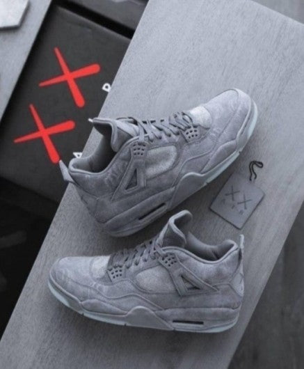 The Nik-e Air Jordan Retro 4 KAWS Semi UA is a highly sought-after sneaker that blends streetwear art with classic Jordan heritage. Designed in collaboration with world-renowned artist KAWS, this edition stands out with its premium suede construction, subtle tonal detailing, and the signature “XX” branding on the heel. The glow-in-the-dark outsole adds a bold, futuristic touch, while the detailed stitching and craftsmanship showcase top-tier quality. A must-have for collectors and sneaker enthusiasts, this pair combines luxury, exclusivity, and everyday wearability in one iconic silhouette.