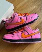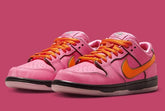 The Nike SB Dunk Low “Blossom Pink” is a vibrant collaboration inspired by The Powerpuff Girls’ fearless leader, Blossom. Dressed in a mix of Lotus Pink and Digital Pink, the sneaker captures her iconic style with a Magma Orange Swoosh and laces, accented by heart-shaped lace details that nod to her signature bow. The heel features embroidered Blossom eyes, while reflective piping and an icy translucent outsole add modern flair. Inside, satin lining and special graphic insoles with Mojo Jojo bring playful storytelling, while Zoom Air cushioning ensures comfort and performance. Released in December 2023, this limited-edition SB Dunk fuses skate heritage with nostalgic cartoon energy, making it a standout for collectors and fans alike.